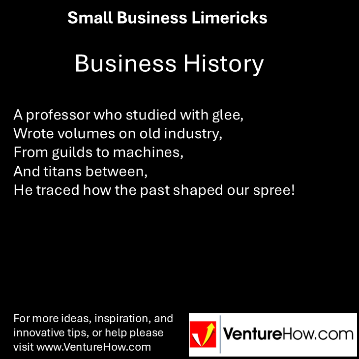 A professor who studied with glee, Wrote volumes on old industry, From guilds to machines, And titans between, He traced how the past shaped our spree!