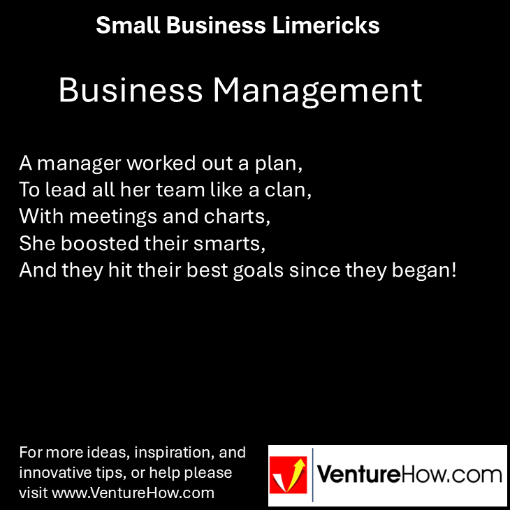 A manager worked out a plan, To lead all her team like a clan, With meetings and charts, She boosted their smarts, And they hit their best goals since they began!