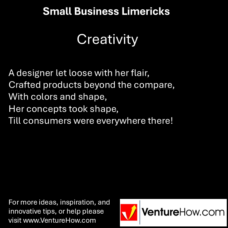 A designer let loose with her flair, Crafted products beyond the compare, With colors and shape, Her concepts took shape, Till consumers were everywhere there!
